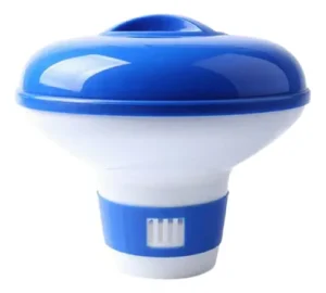Compacto e fácil de usar — basta colocar sobre a água da piscina com o tablete de cloro.